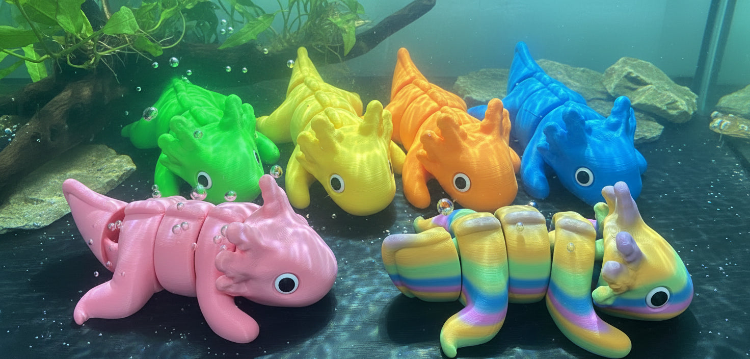 Bring home the joy with this big, 3D printed axolotl! This fun and cute toy adds a splash of whimsy to any room, perfect for playtime or as a charming decoration. Its unique design captures the axolotl’s lovable charm, making it a delightful companion for kids and adults alike. Get ready to smile every time you see this quirky creature!